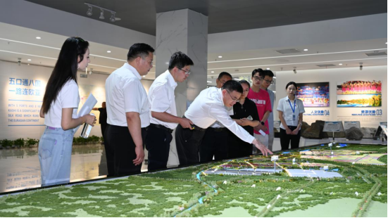 仪式现场,粟智副校长与吴晓斌副专员共同为分院揭牌。新疆大学经济与管理学院党委书记朱新武与喀什地区商务局党组书记周杰代表双方交换了合作协议。揭牌后,新疆大学一行参观了自贸试验区喀什片区招商服务大厅及分院办公场所,并围绕制度创新研究平台建设、合作机制等方面进行了深入交流。
