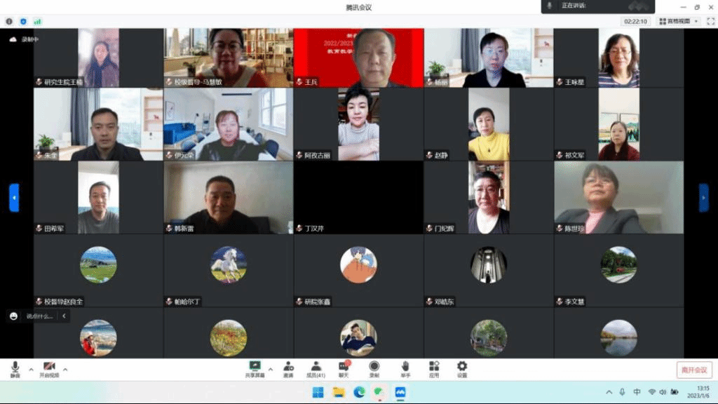 岁末年初,为深入贯彻习近平总书记视察新疆大学时的重要讲话精神,进一步加强我校教育教学质量保障体系建设,提升学校人才培养水平,1月6日,我校召开2022-2023年度第一学期校级教学督导工作总结会。大学党委副书记、校长姚强出席会议并讲话。校级教育教学督导、研究生院分管领导、教学评估中心(高等教育研究所)全体工作人员共计50余人线上参加。