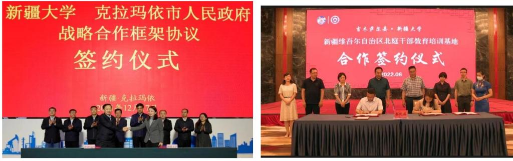 依据新疆大学与克拉玛依市人民政府战略合作协议框架,2022年4月22日,新疆大学与克拉玛依市民族宗教局正式签署《克拉玛依市铸牢中华民族共同体意识示范区建设方案研究》协议,铸牢中华民族共同体意识研究基地研究团队多次深入基层开展调研,形成铸牢中华民族共同体意识示范区建设方案、示范区建设评测指标、重点任务清单等系列成果,为克拉玛依市切实推进铸牢中华民族共同体意识工作提供了参考和指南。2022年6月14日,新疆大学与吉木萨尔县人民政府就“新疆维吾尔自治区北庭铸牢中华民族共同体意识干部培训基地建设合作协议”举行了签约仪式,新疆大学多位教师结合研究专长,为弘扬北庭历史文化、打造具有“北庭特色”干部教育培训基地贡献力量。目前已经完成第一期《四个认同与北庭历史》等六门主课和四个现场教学点的课程建设。新疆大学积极走出校园,服务社会,为推进“文化润疆”工程搭建优质平台,彰显了新疆大学响应“文化润疆”的责任和风采。(来源:社科处)
