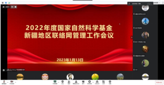 2023年1月13日,由新疆大学主办的国家自然科学基金新疆地区联络网2022年度管理工作会议在线召开。来自区内各高校、科研院所的科研管理工作者100余人参加会议。
