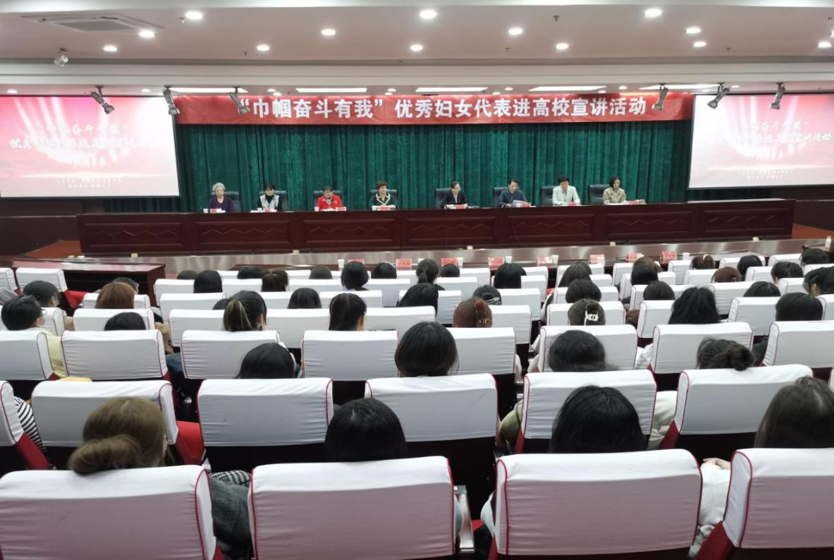为纪念“三八”国际妇女节113周年,进一步加强对高校女大学生思想政治引领和价值引领,激励高校女性争做伟大事业的建设者、文明风尚的倡导者、敢于追梦的奋斗者,为建设新时代中国特色社会主义新疆贡献巾帼力量。近日,由自治区妇联主办、新疆大学承办的“巾帼奋斗有我”优秀妇女代表进高校宣讲活动在新疆大学红湖校区图书馆二楼学术报告厅举行。自治区妇联党组成员、副主席(挂职),新疆大学党委常委、副校长沙吾列·依玛哈孜,新疆妇女干部学校党委副书记、校长玛依拉·阿西木出席,“八千湘女”代表刘玲玲、刘祖佩,伊犁紫苏丽人生物科技有限公司党支部书记、董事长杨建新,中国民间文艺家协会青年委员、新疆工艺美术协会理事、新疆文艺家协会理事孟璐璐,中国人民解放军麦丽开·亚尔麦麦提五名嘉宾应邀参加。全校200余名师生代表聆听宣讲。