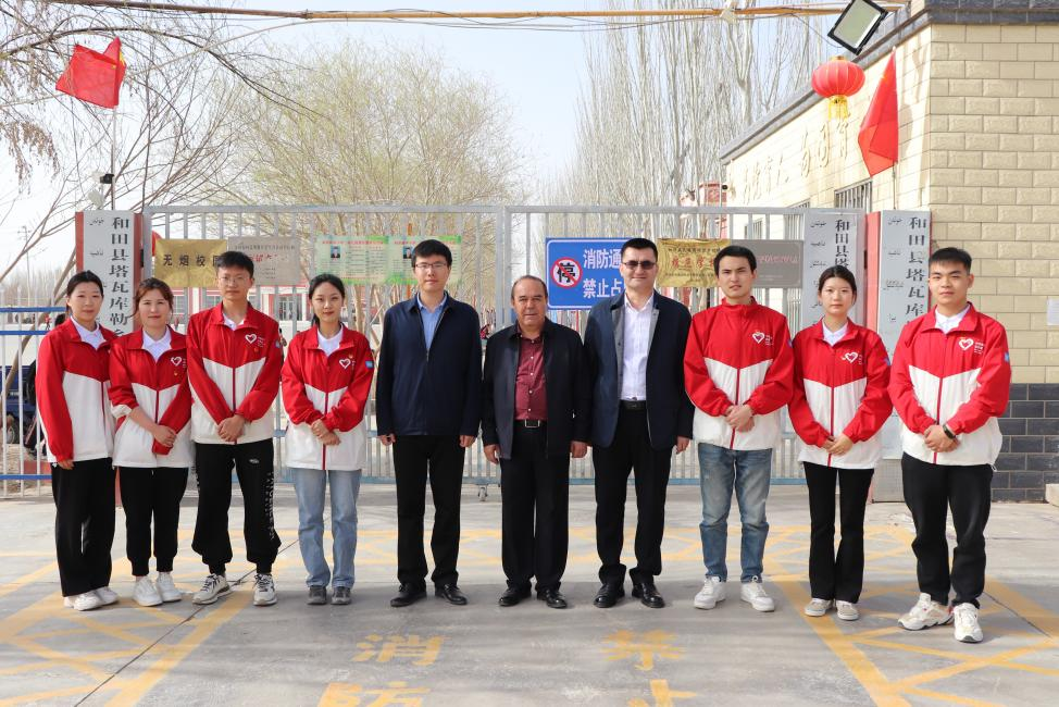 3月17日,新疆大学驻村工作总领队艾则孜·托乎提一行人来到和田县塔瓦库勒乡巴克墩村小学看望慰问我校第11届研究生支教团志愿者。