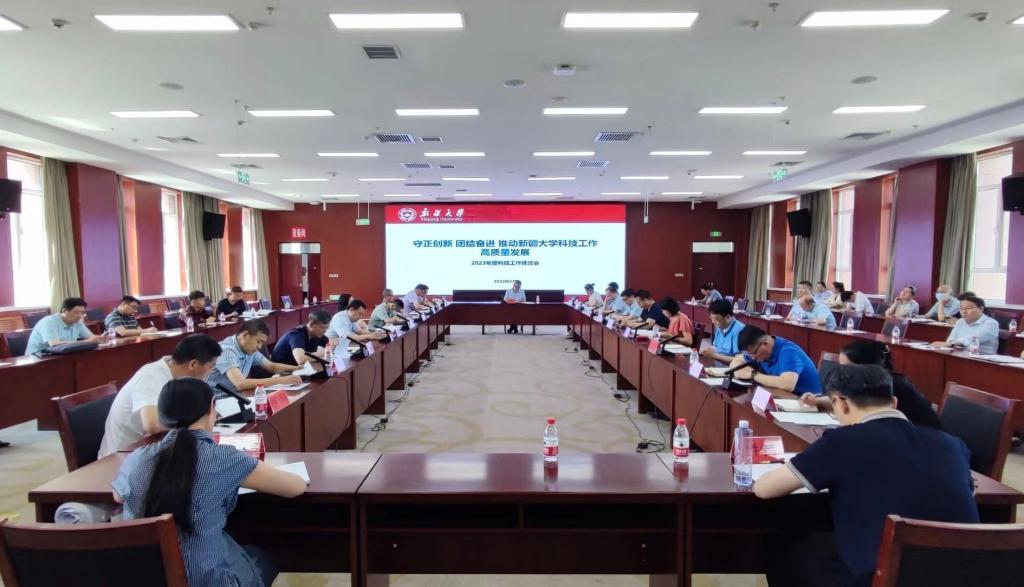 6月13日,我校召开以“守正创新 团结奋进 推动新疆大学科技工作高质量发展”为主题的2023年第二次科技工作推进会,会议总结了上半年科研工作进展情况,分析了当前科技工作面临的形势和存在的问题,安排部署了下一阶段工作任务。大学党委常委、副校长周建平参加会议并讲话,各学院(所、中心)负责人、分管科研副院长、科研秘书及科技处全体人员参加会议。