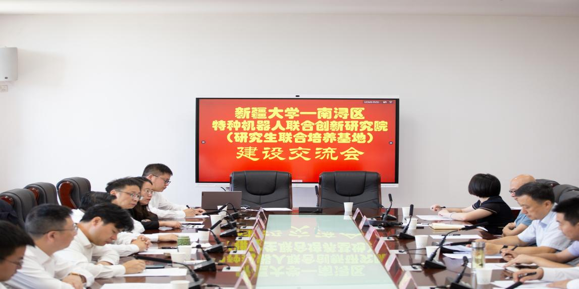 9月8日上午,在浙江省湖州市南浔区委常委、副区长陈晓的带领下,南浔人才产业集团、英明智能机器人、天航智能机器人到新疆大学进行合作交流,并正式签订共建援疆产业技术研究院的合作协议。新疆大学科技处副处长周建星、计算机科学与技术学院(网络空间安全新学院)、电气工程学院和智能制造现代产业学院(机械工程学院)主要负责人参加了会议。会议由周建星主持。