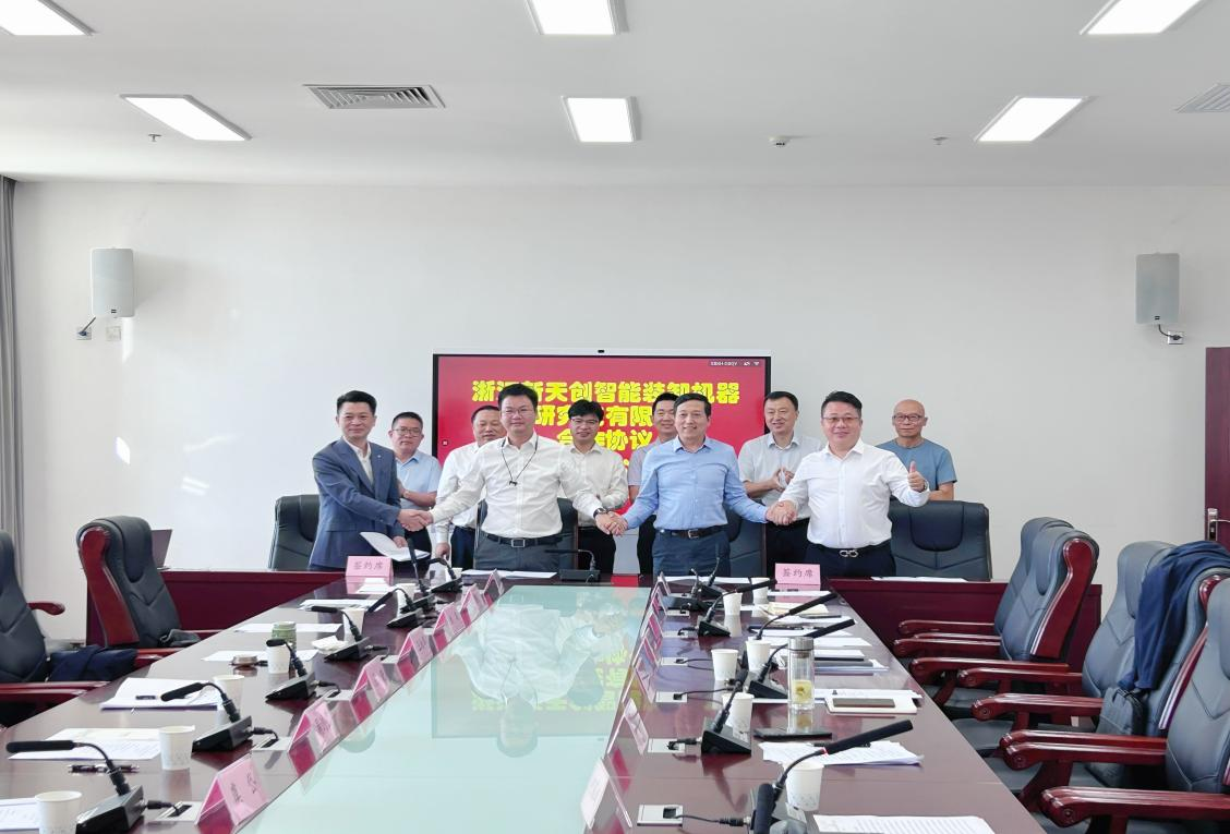 与会人员聆听了研究生培养基地青创部落规划。新疆大学、湖州市南浔区政府和英明集团、天航智能机器人达成四方合作,签约了关于创立“浙江新天创智能装卸机器人研究院有限公司”合作协议。