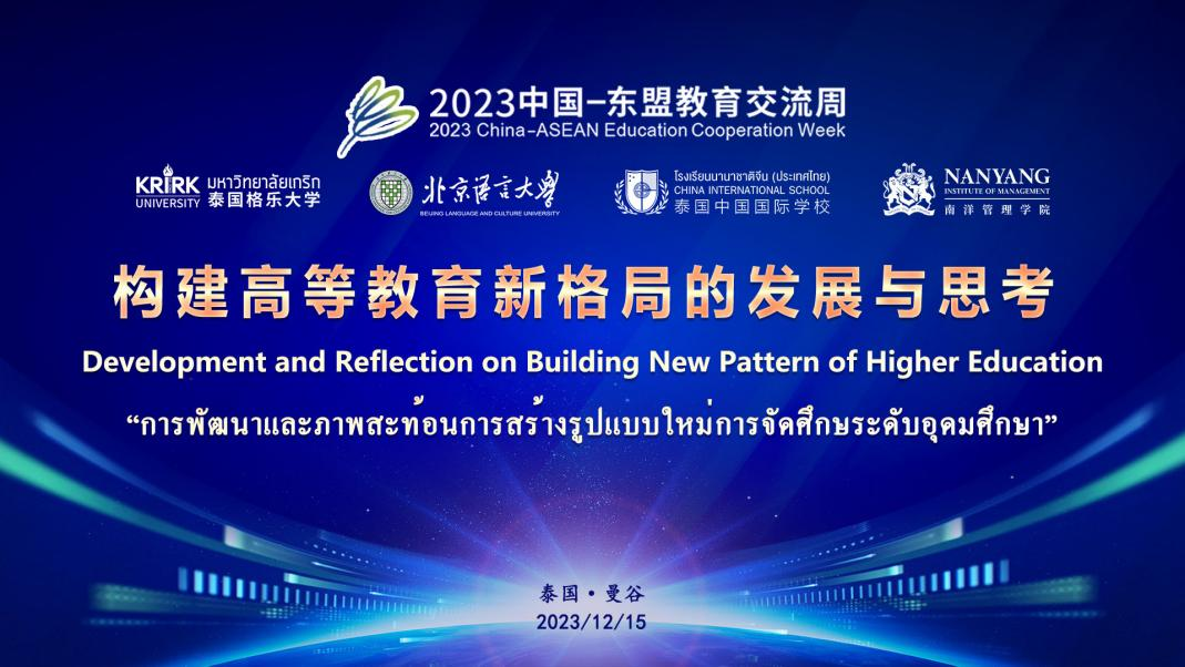 12月15日北京时间10点整,由泰国格乐大学、中国北京语言大学、泰国-中国国际学校、新加坡南洋管理学院联合主办的2023中国-东盟教育交流周“加强高质量国际教育发展,构建国际应用型人才培养新格局”主题研讨会在泰国格乐大学国际学术会议中心隆重开幕。研讨会采用线上线下相结合的方式进行,会议使用泰语、中文、英语同步进行直播,千余名专家学者和有关高校师生代表参加会议,互联网线上关注会议近40万人次。