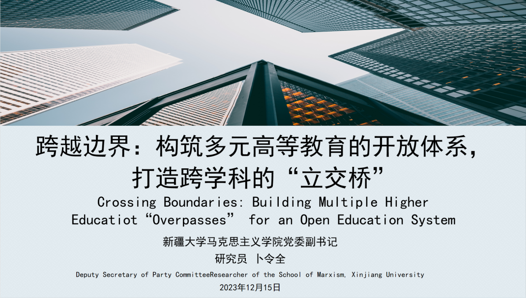 在发言中,卜令全通过审视当前教育体系所面临的机遇与挑战逐步过渡到探讨如何打破学科之间的障碍,构建一个更加开放、更加包容的教育体系。卜令全强调跨学科的开放式教育能够为个体提供更多选择与灵活性,能够解决复杂问题,推动社会进步,同时多元性的教育体系也有助于打破社会中的不平等现象。随后,围绕实现跨学科的“立交桥”何以可能的问题,他指出我们可以从构建强有力的跨学科交流平台、对课程设计与学科进行创设整合以及加强学科团队的沟通与合作三个方面着手。最后,卜令全谈到,构建多元高等教育的开放体系并打造跨学科的“立交桥”是迎接未来知识社会挑战的重要一步,这一变革对于推动学科发展、培养跨学科人才以及解决社会问题都具有积极的影响。