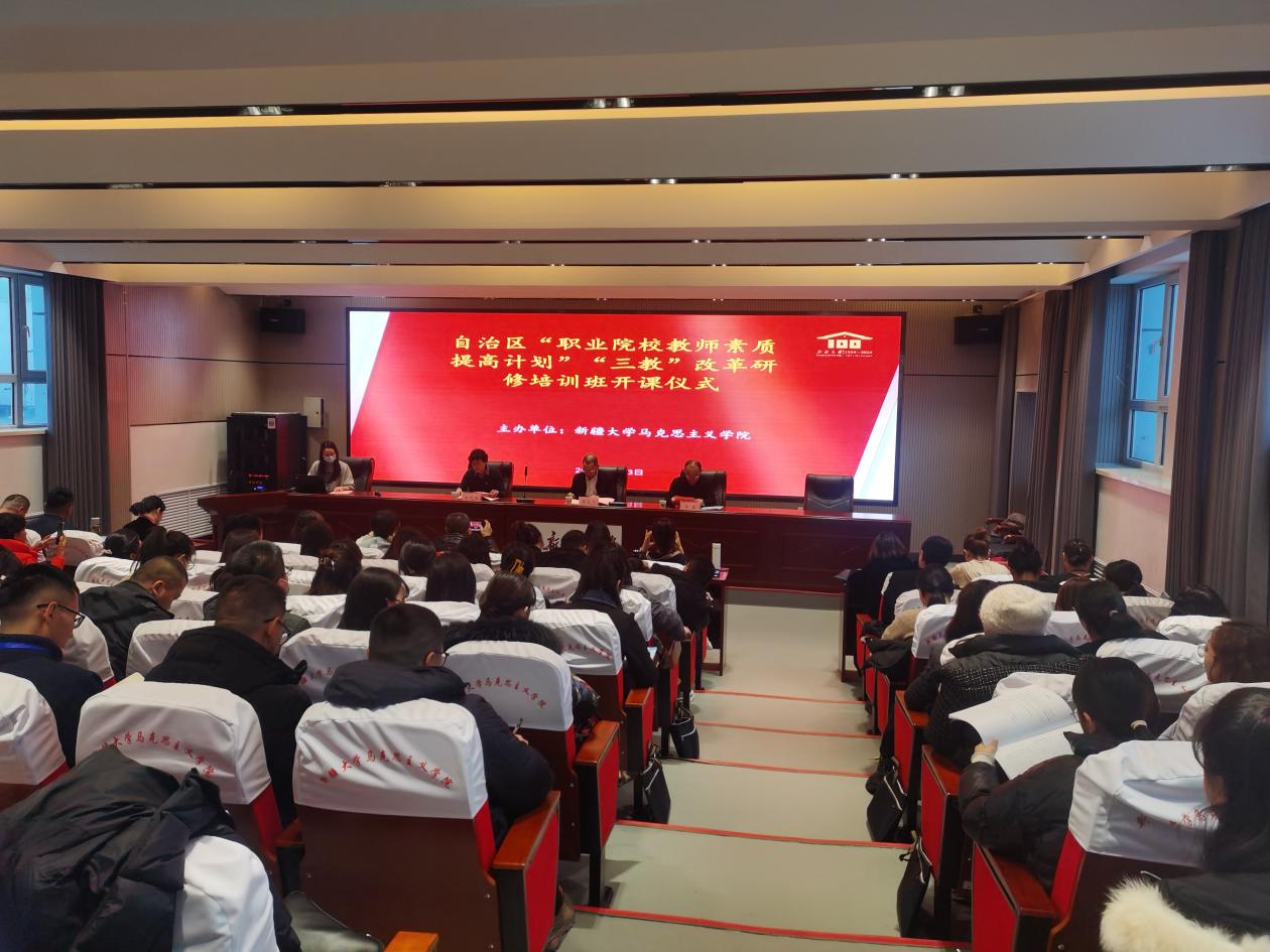 1月4日,自治区“职业院校教师素质提高计划”“三教”改革研修培训班(思政课骨干教师)开班仪式在新疆大学红湖校区10号楼118学术报告厅举行。我校马克思主义学院受自治区教育厅和继续教育学院委托组织承接此培训班,旨在提升职业院校教师的教学能力、科研水平和综合素质,进而推动职业教育的全面发展。开班仪式上,来自全疆各地州共101名中高职思政课教师们怀着满腔热情和对未来的憧憬,齐聚一堂,共同探讨教育教材教法改革的新路径。新疆大学马克思主义学院常务副院长冯昆主持本次活动。