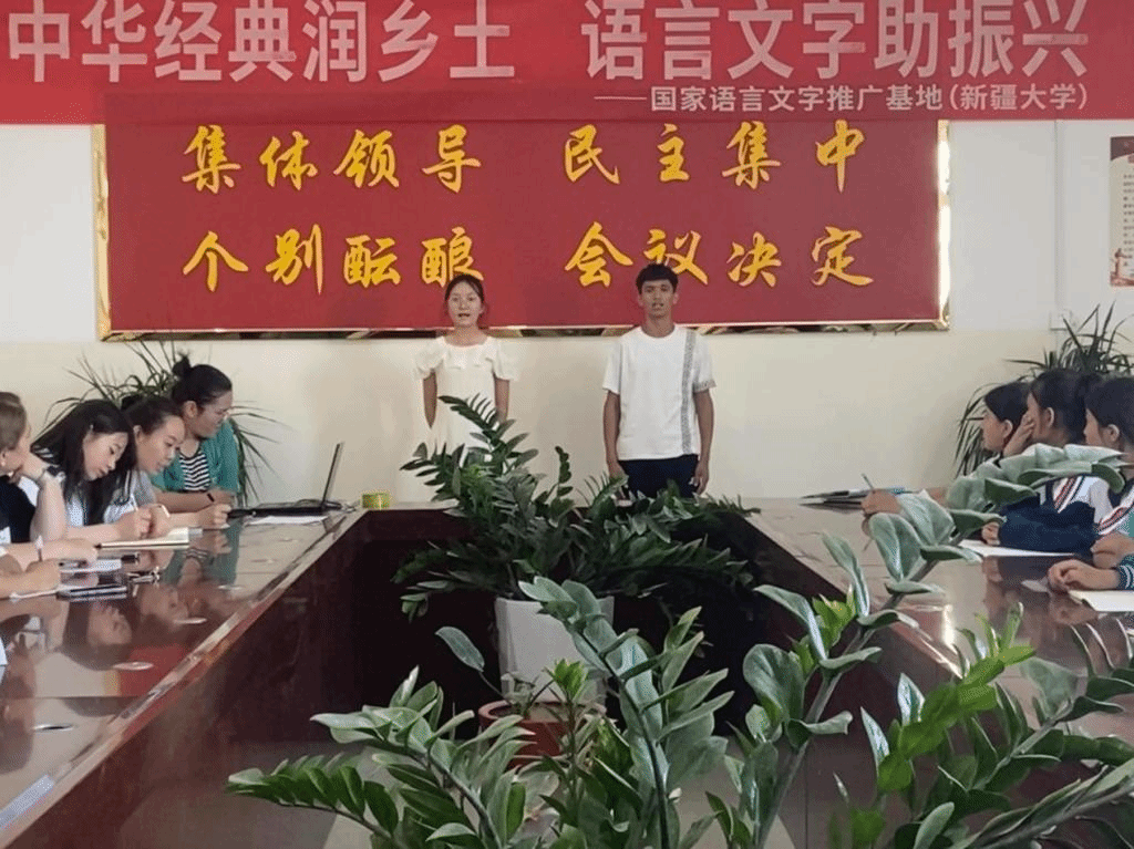 根据习近平总书记关于推广普及国家通用语言文字的重要指示精神,为深入贯彻党中央对国家语言文字事业的全面领导,并立足于构建大语言文字工作格局的战略部署,国家语言文字推广基地(新疆大学)近日在喀什地区叶城县中小学组织开展了以“中华经典润乡土,语言文字助振兴”为主题的系列活动。这一系列活动旨在积极推进民族地区校园语言文字工作建设,紧密结合喀什地区叶城县当地校园的实际情况,通过形式多元、内容充实的实践活动,有效提升师生对国家通用语言文字的认知程度和应用能力,从而为推动当地经济社会的全面发展提供坚实的语言支持。