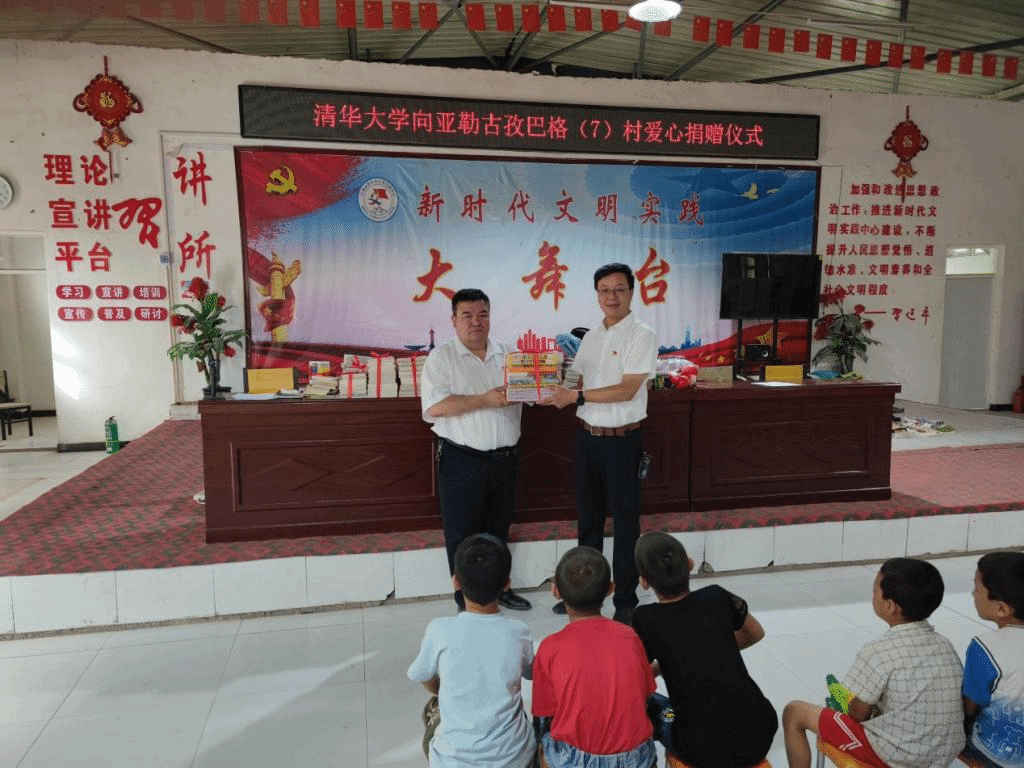 7月1日,清华大学第二次爱心捐赠仪式在依提木孔镇亚勒古孜巴格村村委会会议室举行,捐赠仪式由新疆大学驻亚勒古孜巴格村第一书记杨军主持。