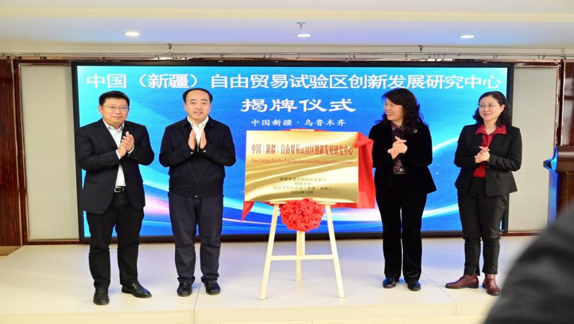 日前,中国(新疆)自由贸易试验区创新发展研究中心揭牌仪式暨学术研讨会在新疆大学红湖校区成功举办。新疆大学党委副书记孟凡丽、自治区商务厅厅长、中国(新疆)自由贸易试验区工作办公室副主任邢涛、深圳综合开发研究院前海分院副院长刘容欣出席了会议。对外经贸大学校长赵忠秀等来自国内的知名专家学者、相关部门和行业代表100余人参加了会议。中国(新疆)自由贸易试验区创新发展研究中心是由自治区商务厅、新疆大学与综合开发研究院(中国·深圳)三方携手共建的新疆自贸试验区特色智库,旨在打造高水平研究平台,聚焦关键议题,开展深度研究,为新疆自贸试验区高水平、高质量发展提供智力支持,助力新疆全面深化改革和扩大开放。
