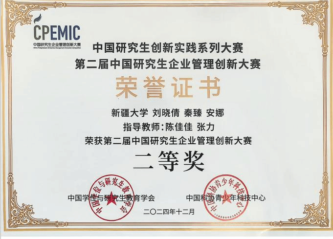 12月1日,第二届中国研究生企业管理创新大赛全国决赛在成都落下帷幕。新疆大学共有9支参赛队伍获奖,其中由新疆大学商学院2023级MBA研究生刘晓倩、秦臻、安娜组成的“少年先锋队”,荣获全国二等奖。