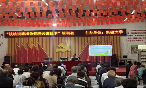 新疆大学驻叶城县工作队总领队李家新主持开讲仪式。指出了在全面开始核桃采摘之前,举办此次专业培训非常必要,特别强调掌握特色林果栽培管理、嫁接疏密、病虫害防治等实用技能,对于农民增产增效具有重要意义。
