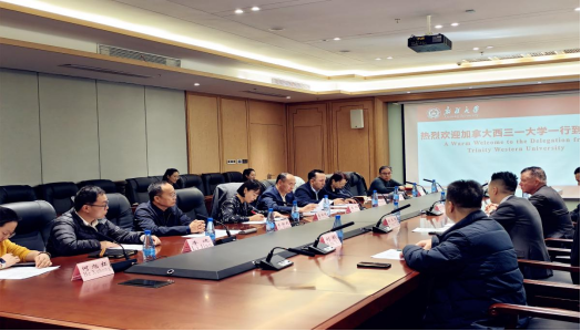 2025年11月19日上午,加拿大西三一大学代表团一行到访新疆大学并开展了交流座谈会。新疆大学党委常委、副校长晋刚出席此次会议,国际交流与合作处处长乃珂热曼·依布拉音主持座谈会。