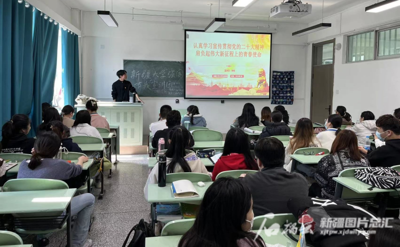 3月22日,新疆大学“强国有我”大学生宣讲团宣讲员走进各团支部宣讲党的二十大精神。阿布都外力·吐尼亚孜摄