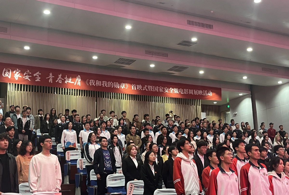 当日,新疆大学300名团员青年与8所在乌鲁木齐高校师生代表一起,共同观看国家安全公益微电影《我和我的勋章》首映,聆听国家安全主题微团课,并对全疆团员青年发出为维护国家安全挺膺担当倡议。