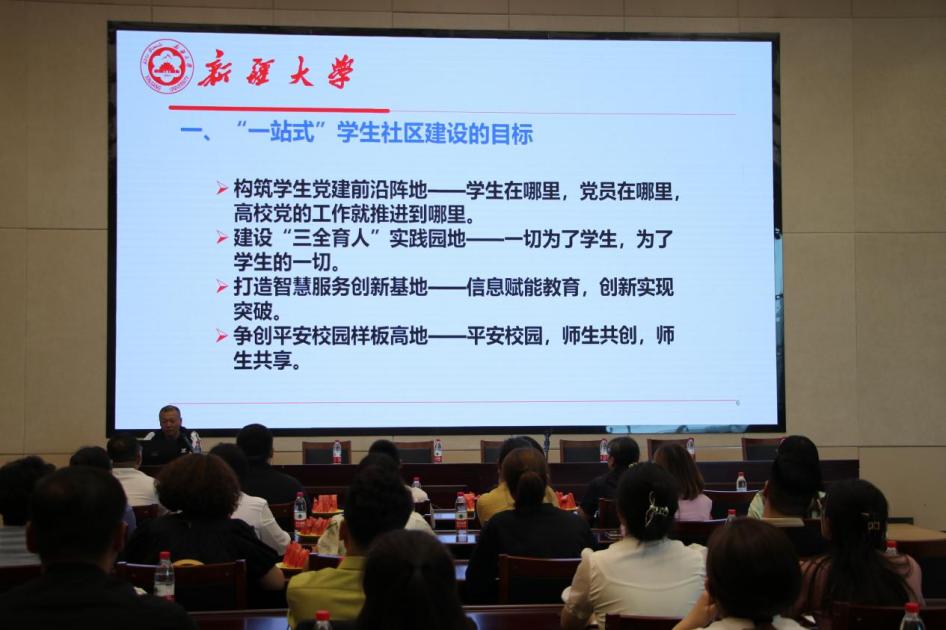 8月18日下午,新疆财经大学学生工作部部长魏昕一行45人来新疆大学博达校区座谈交流“一站式”学生社区建设。党委学生工作部(学生社区教育管理服务中心)副部长(副主任)李育强主持座谈会,学生社区教育管理服务中心相关科室及社区辅导员参加座谈。