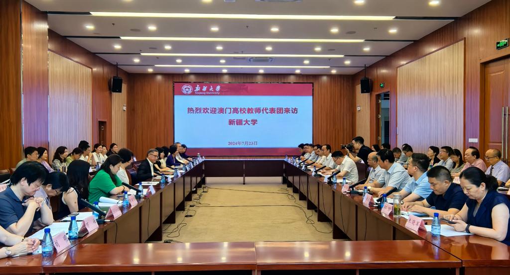 中央政府驻澳门联络办公室教育与青年工作部高校处处长岑嘉仪,澳门大学、澳门科技大学、澳门理工大学、澳门旅游大学、澳门城市大学、澳门镜湖护理学院等澳门高校有关负责人,新疆大学党委教师工作部、党委学生工作部、教务处、研究生院、科学技术处、社会科学处、港澳台事务办公室、经济与管理学院、法学院、中国语言文学学院、外国语学院、商学院、国际文化交流学院、旅游学院、物理科学与技术学院、生命科学与技术学院、地理与遥感科学学院、生态与环境学院、计算机科学与技术学院、电气工程学院、建筑工程学院、纺织与服装学院、药学院(药物研究所)、工程师学院、体育教学研究部、美育(艺术)教学研究部等有关部分负责人参加会议。(来源:国际交流与合作处、港澳台事务办公室)