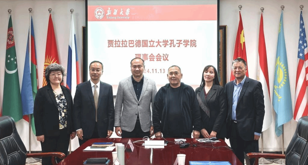 11月13日,2024年吉尔吉斯斯坦贾拉拉巴德国立大学孔子学院理事会会议在新疆大学顺利召开。大学党委常委、副校长晋刚,贾拉拉巴德国立大学校长乌森诺夫·肯尼什别克、孔子学院中方院长付鸿军及吉方院长玛吾柳达·沙克洛娃参加会议,会议由新疆大学国际交流与合作处处长朱新武主持。